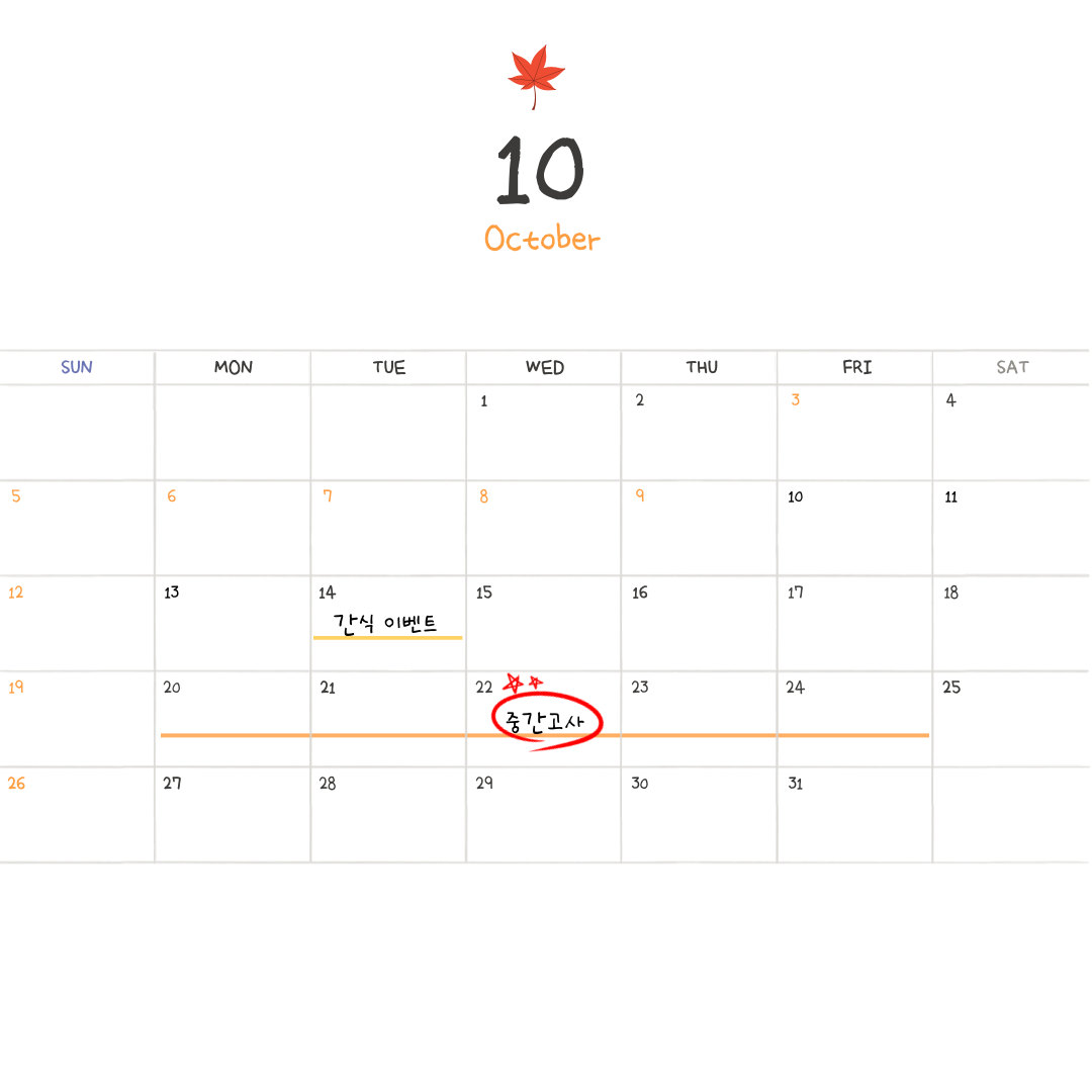 10월에는 2학기의 첫 시험인 중간고사가 예정되어 있습니다📚📚