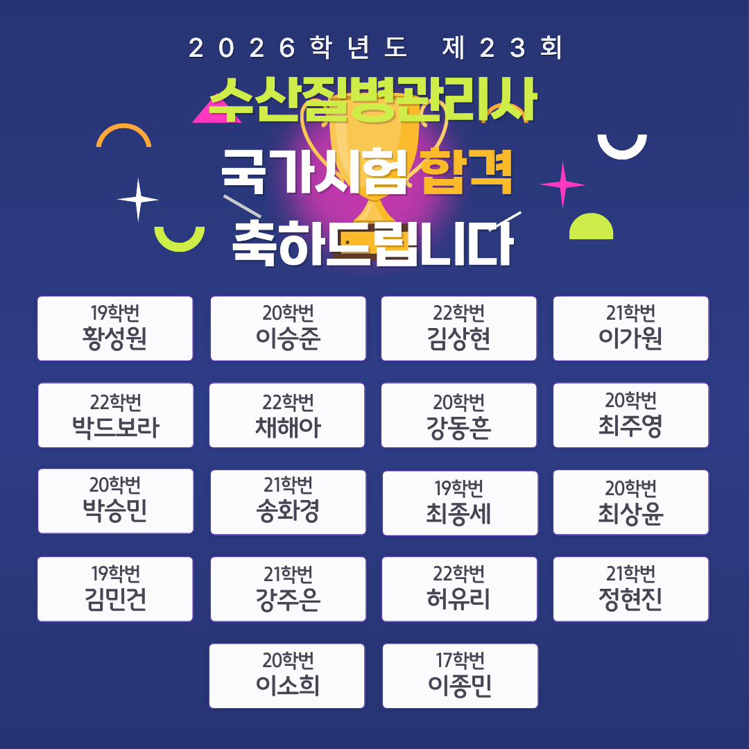🎉2026년도 제23회 수산질병관리사 국가시험 합격🎉